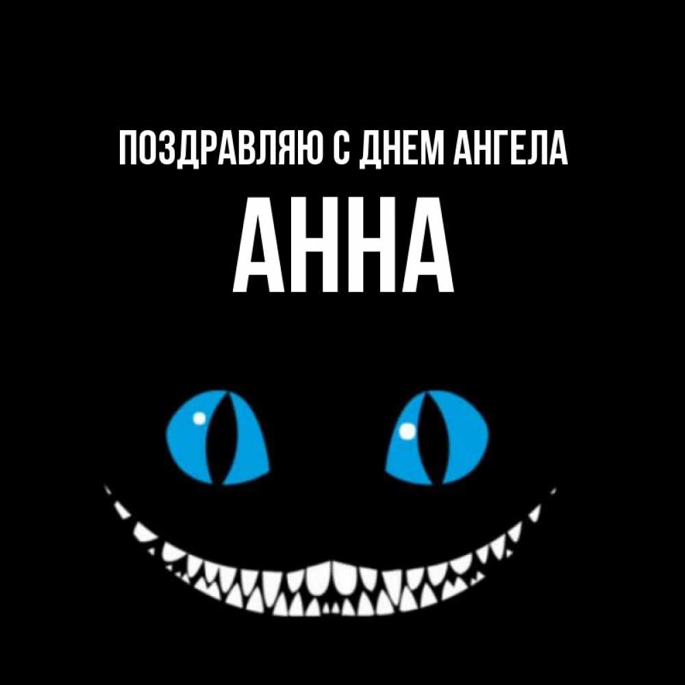 Открытка Поздравляю с днем Ангела Анна. чеширский кот и утречко. голубые глаза и зубки