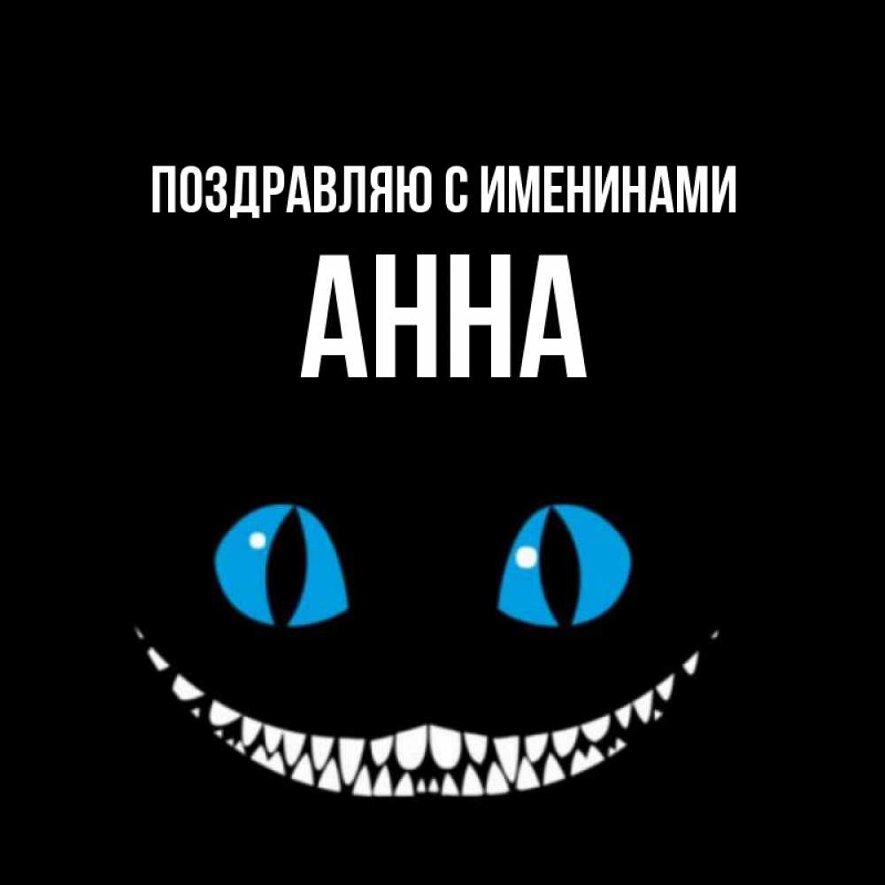 Открытка Поздравляю с именинами Анна. чеширский кот и утречко. голубые глаза и зубки