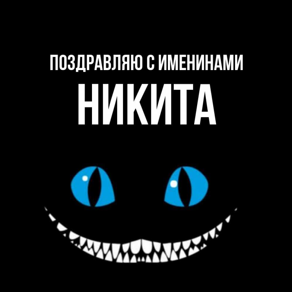 Открытка Поздравляю с именинами Никита. чеширский кот и утречко. голубые глаза и зубки