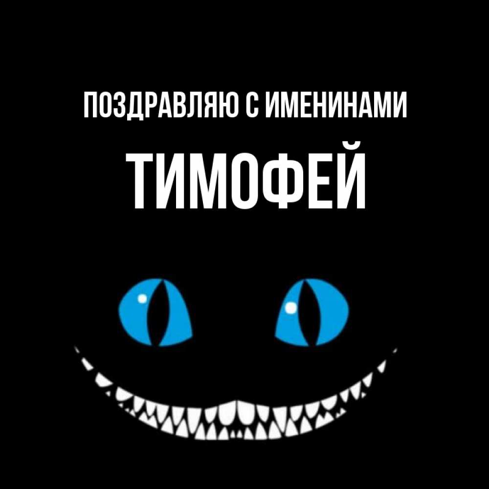 Открытка Поздравляю с именинами Тимофей. чеширский кот и утречко. голубые глаза и зубки