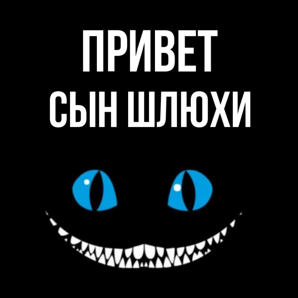 Открытка Привет Сын шлюхи. чеширский кот и утречко. голубые глаза и зубки