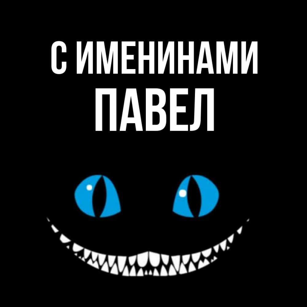 Открытка С именинами Павел. чеширский кот и утречко. голубые глаза и зубки