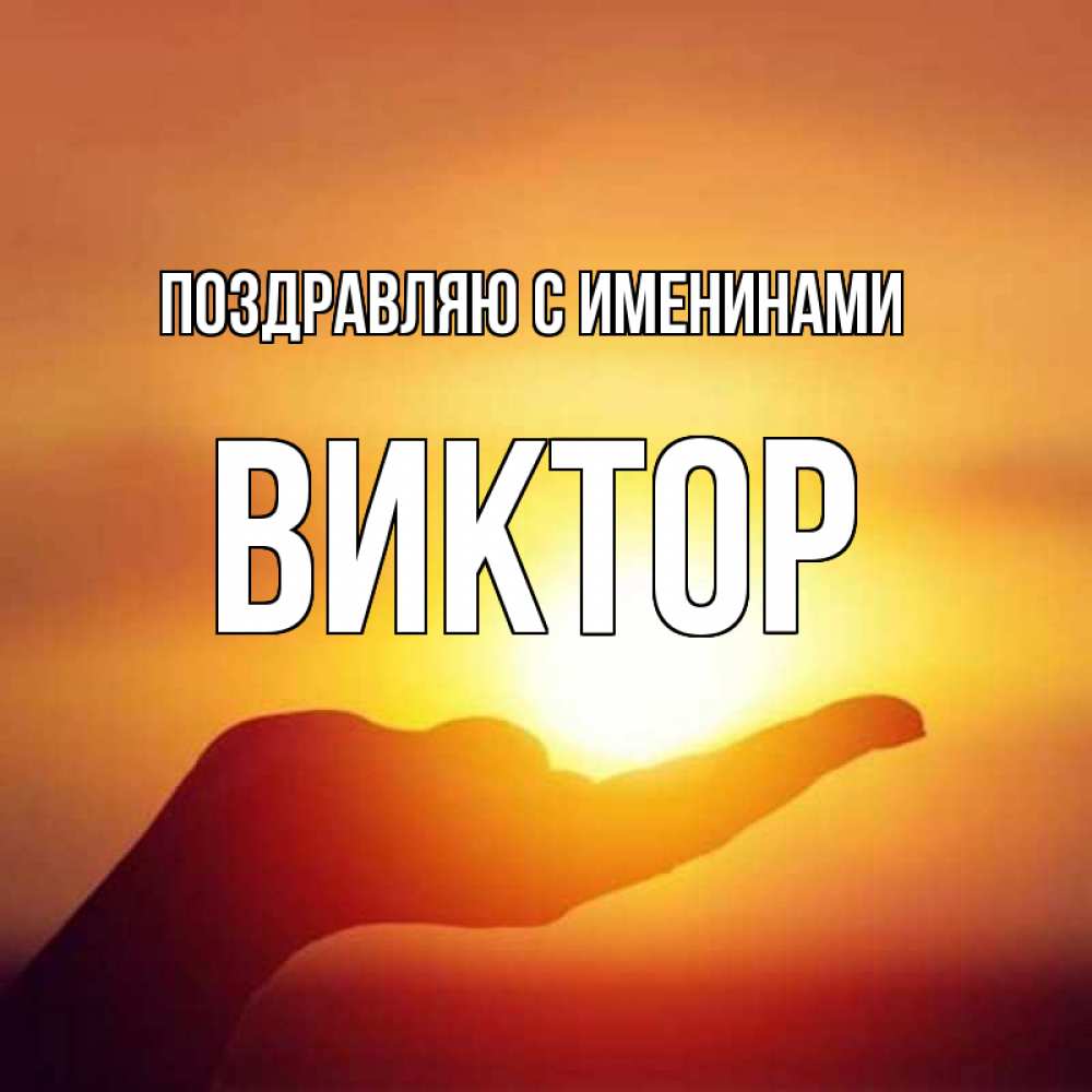 Открытка Поздравляю с именинами Виктор. солнце в руке. ладошка и закат