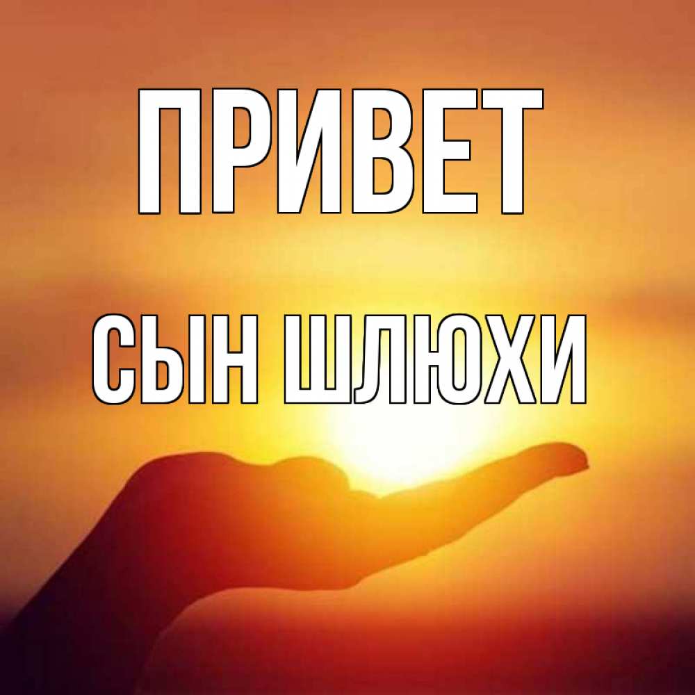 Открытка Привет Сын шлюхи. солнце в руке. ладошка и закат