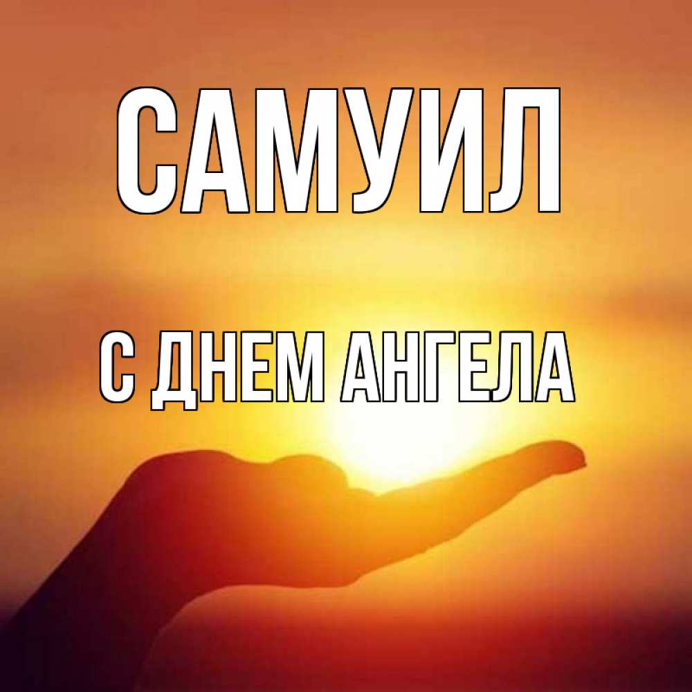 Открытка Самуил С днем ангела. солнце в руке. ладошка и закат