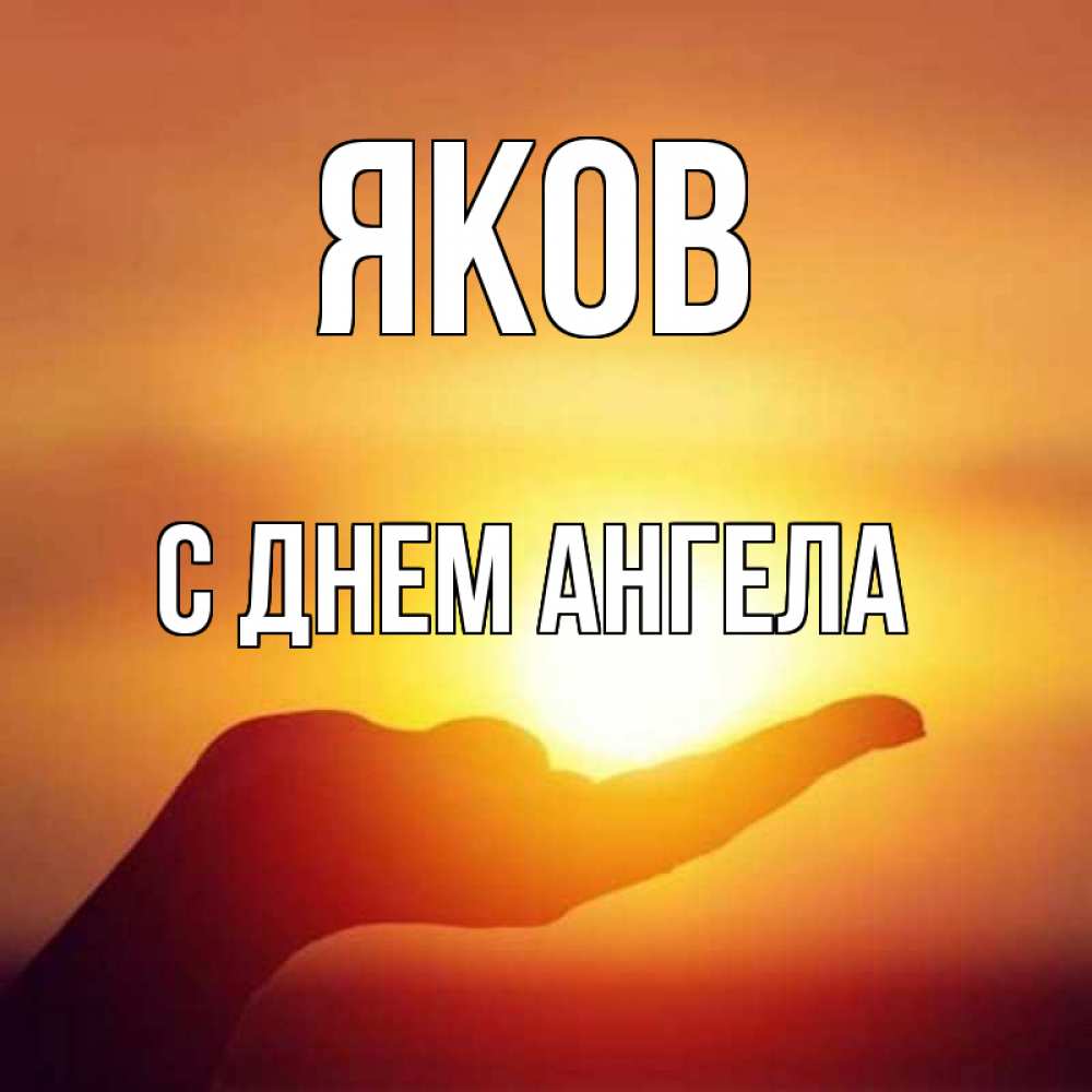 Открытка Яков С днем ангела. солнце в руке. ладошка и закат