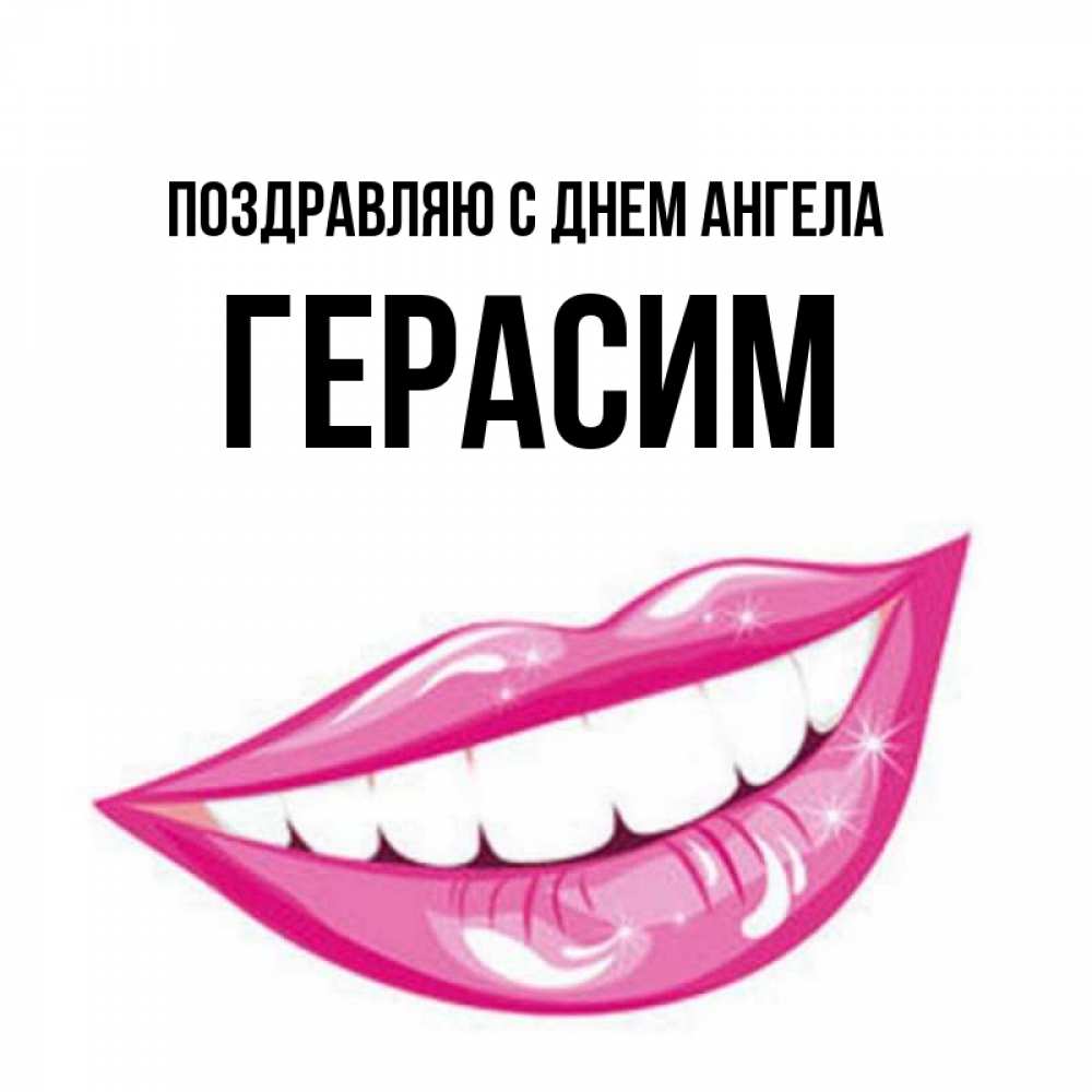Открытка Поздравляю с днем Ангела Герасим. улыбка и губы. розовые губы и белые зубы