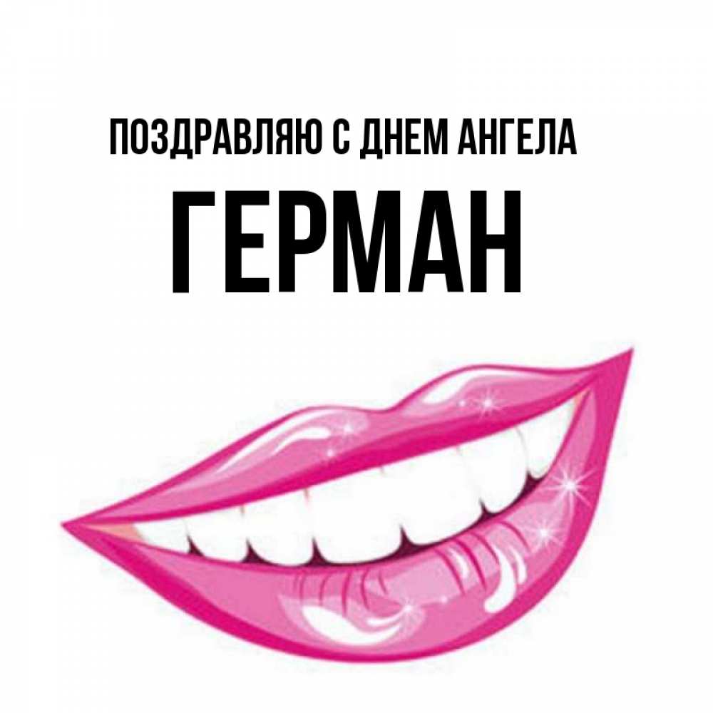 Открытка Поздравляю с днем Ангела Герман. улыбка и губы. розовые губы и белые зубы