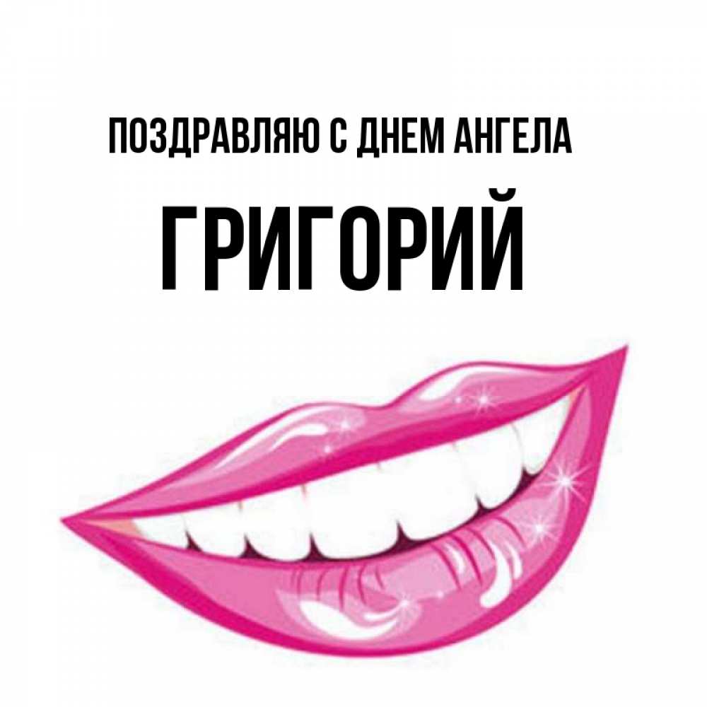 Открытка Поздравляю с днем Ангела Григорий. улыбка и губы. розовые губы и белые зубы