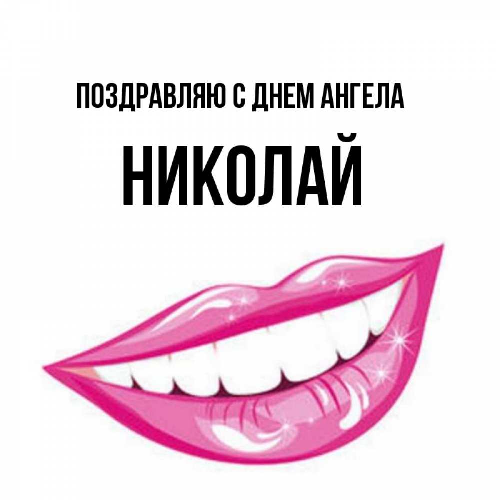 Открытка Поздравляю с днем Ангела Николай. улыбка и губы. розовые губы и белые зубы