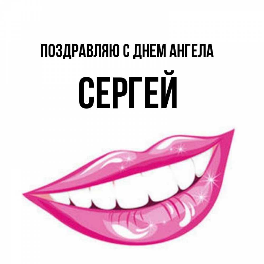 Открытка Поздравляю с днем Ангела Сергей. улыбка и губы. розовые губы и белые зубы