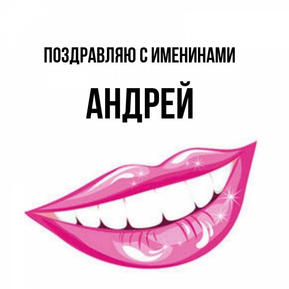 Открытка Поздравляю с именинами Андрей. улыбка и губы. розовые губы и белые зубы