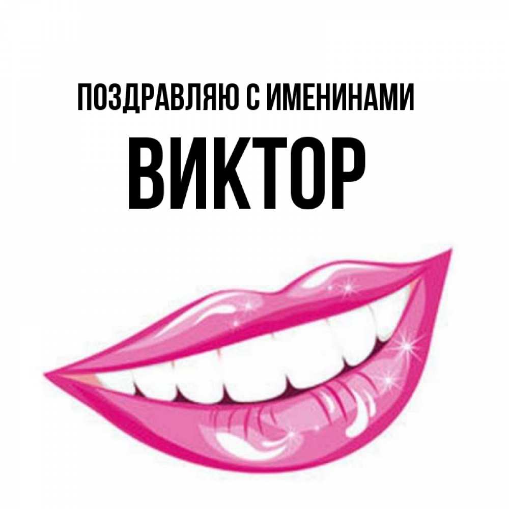 Открытка Поздравляю с именинами Виктор. улыбка и губы. розовые губы и белые зубы