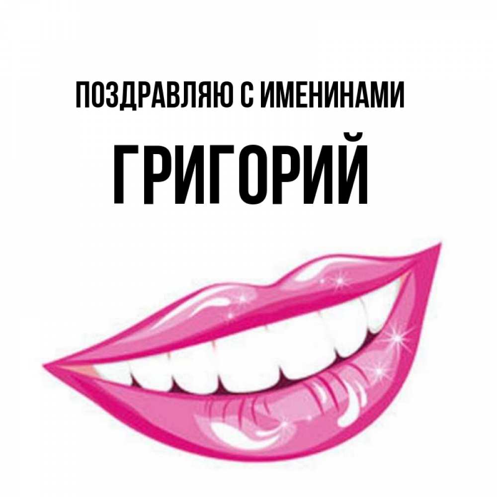 Открытка Поздравляю с именинами Григорий. улыбка и губы. розовые губы и белые зубы