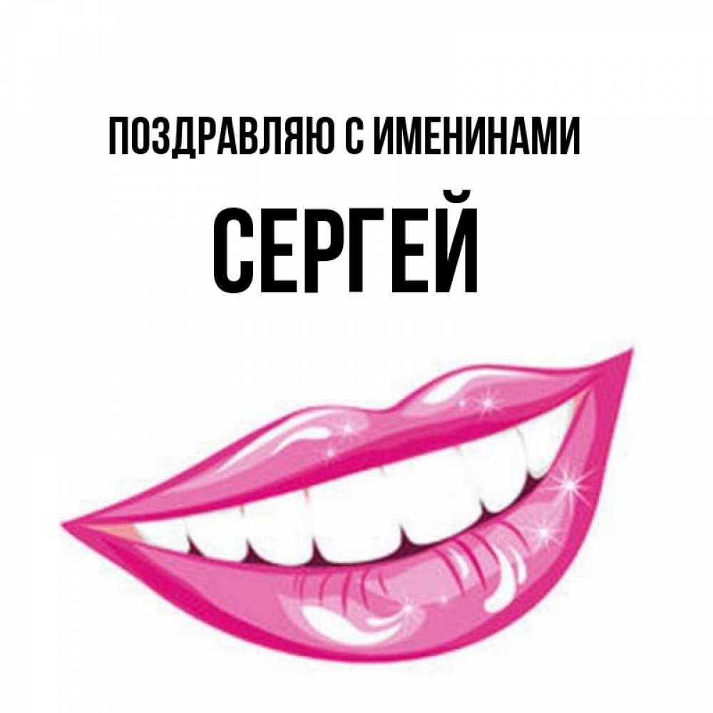 Открытка Поздравляю с именинами Сергей. улыбка и губы. розовые губы и белые зубы