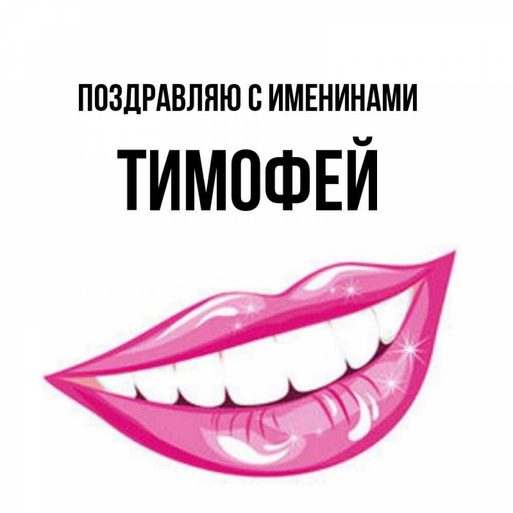 Открытка Поздравляю с именинами Тимофей. улыбка и губы. розовые губы и белые зубы