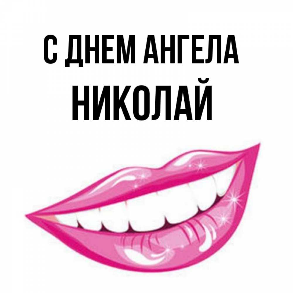 Открытка С днем Ангела Николай. улыбка и губы. розовые губы и белые зубы