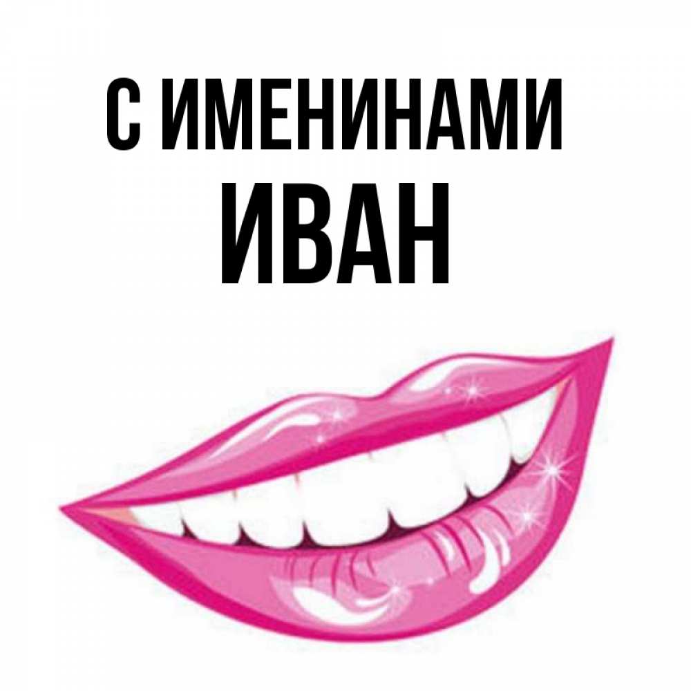 Открытка С именинами Иван. улыбка и губы. розовые губы и белые зубы