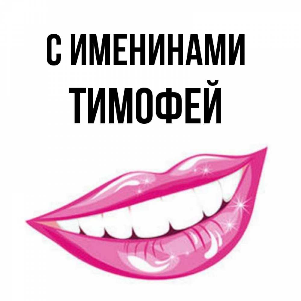 Открытка С именинами Тимофей. улыбка и губы. розовые губы и белые зубы