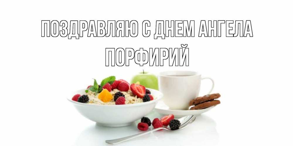 Открытка Поздравляю с днем Ангела Порфирий. Зерна кофе и розы. розы,фрукты, кофе