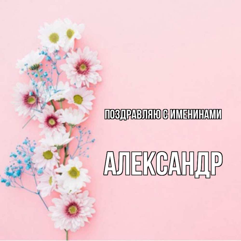 Открытка Поздравляю с именинами Александр. красивые цветы для хорошего настроения. цветы с подписью