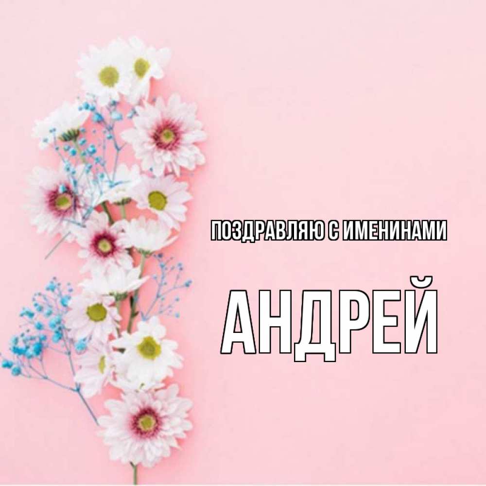 Открытка Поздравляю с именинами Андрей. красивые цветы для хорошего настроения. цветы с подписью