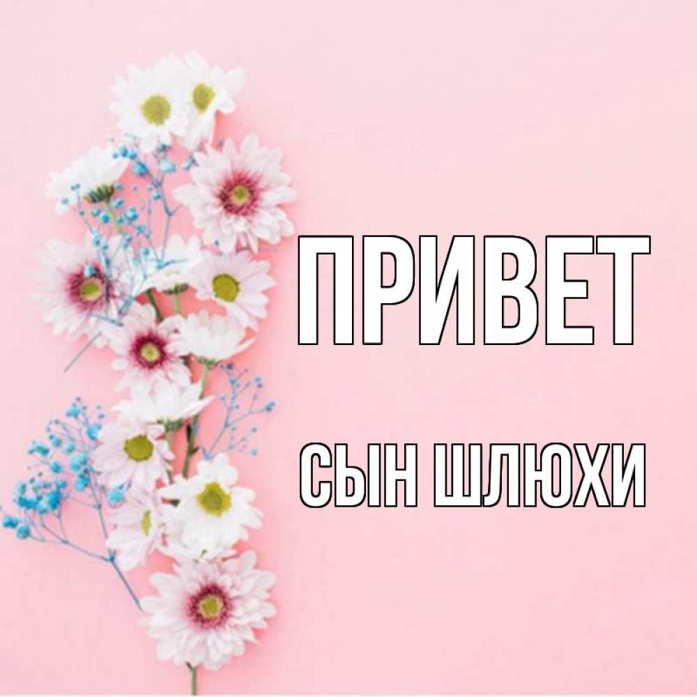 Открытка Привет Сын шлюхи. красивые цветы для хорошего настроения. цветы с подписью