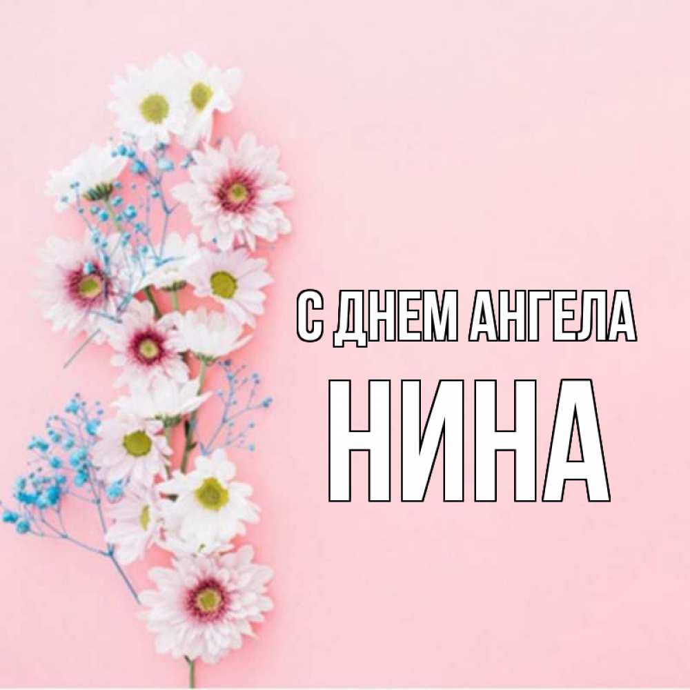 Открытка С днем Ангела Нина. красивые цветы для хорошего настроения. цветы с подписью