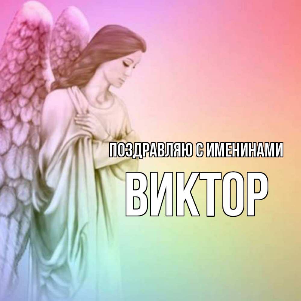 Открытка Поздравляю с именинами Виктор. ангел девушка. крылья