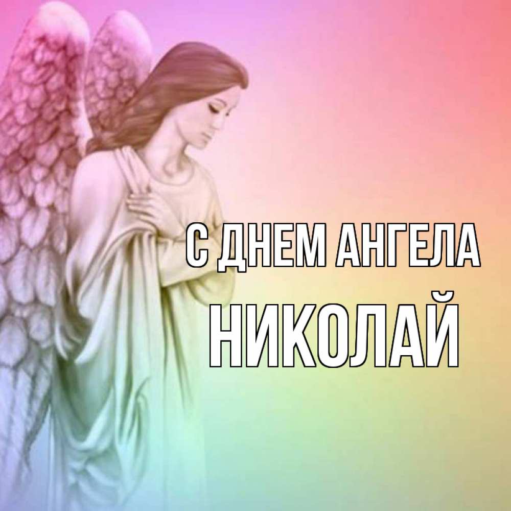 Открытка С днем Ангела Николай. ангел девушка. крылья