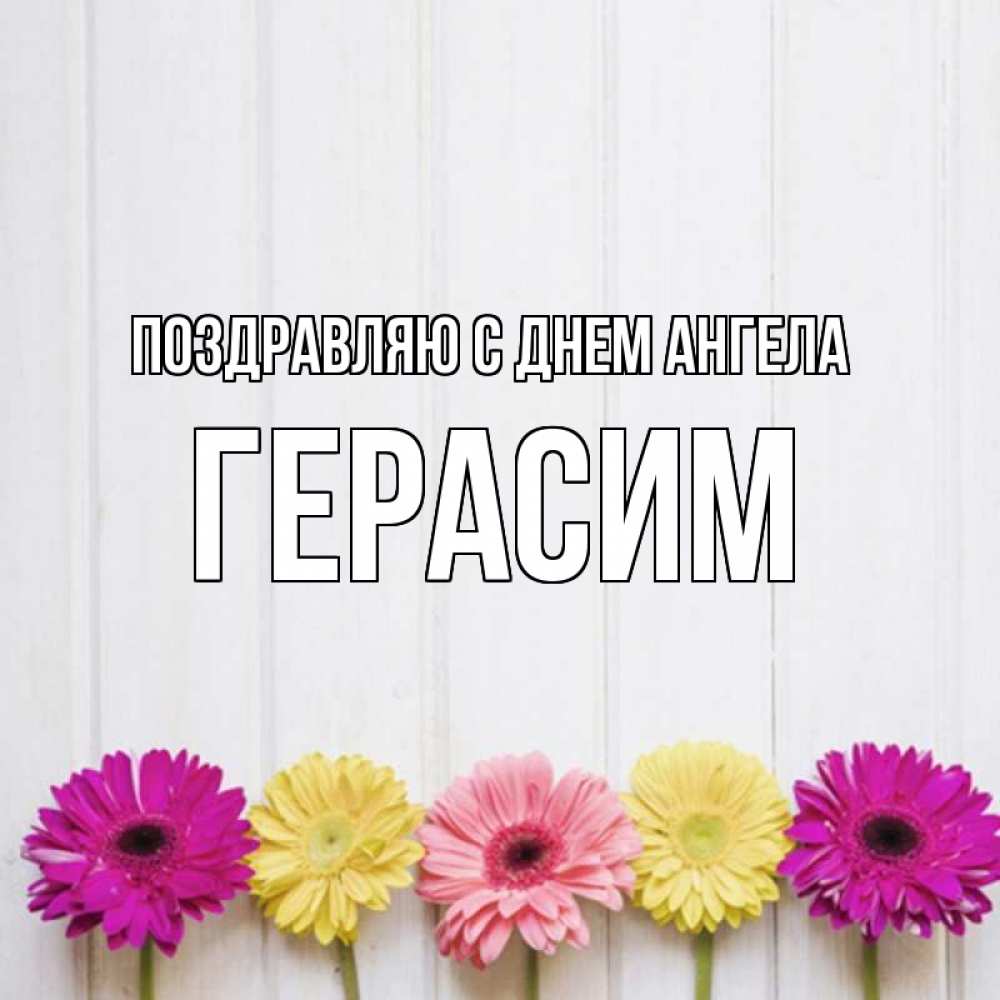 Открытка Поздравляю с днем Ангела Герасим. цветы для позитива. красный желтый и розовый цветок