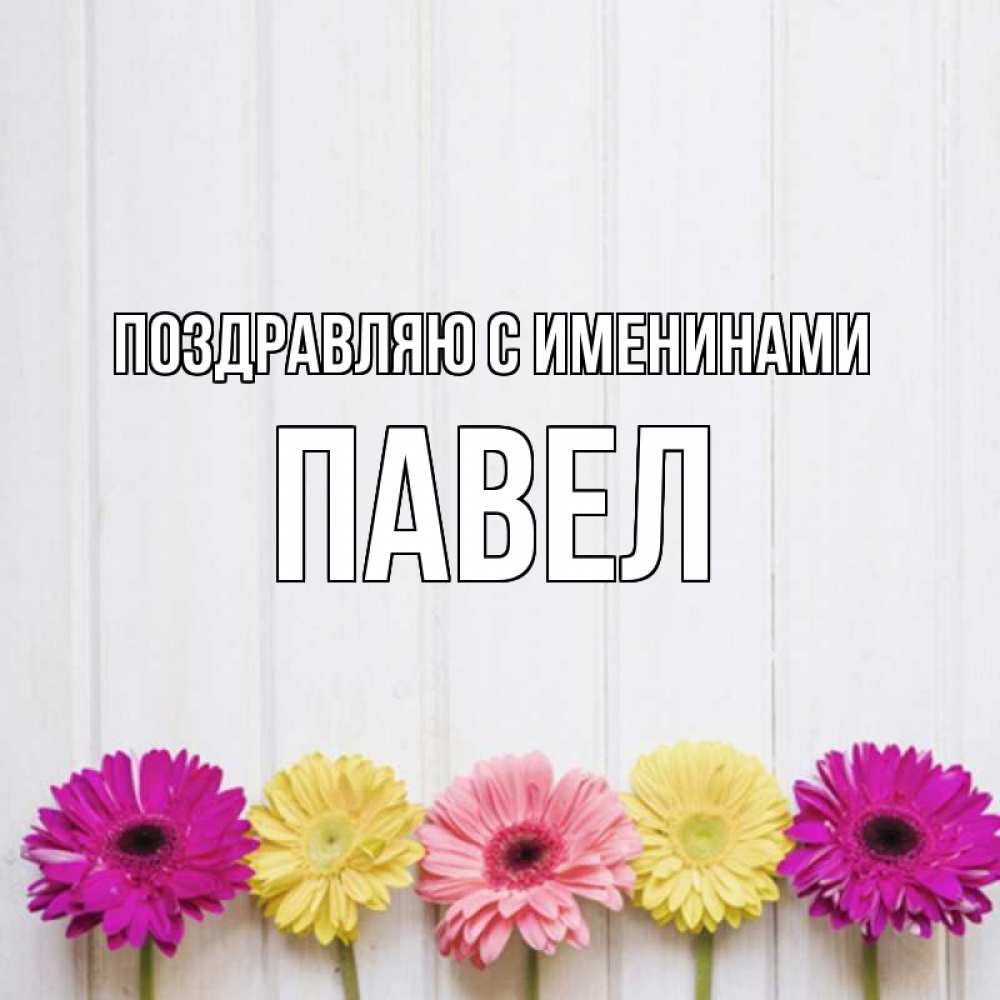 Открытка Поздравляю с именинами Павел. цветы для позитива. красный желтый и розовый цветок