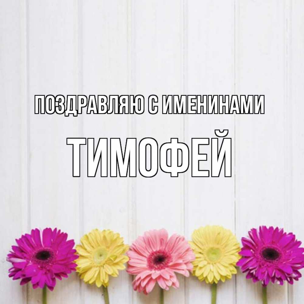 Открытка Поздравляю с именинами Тимофей. цветы для позитива. красный желтый и розовый цветок