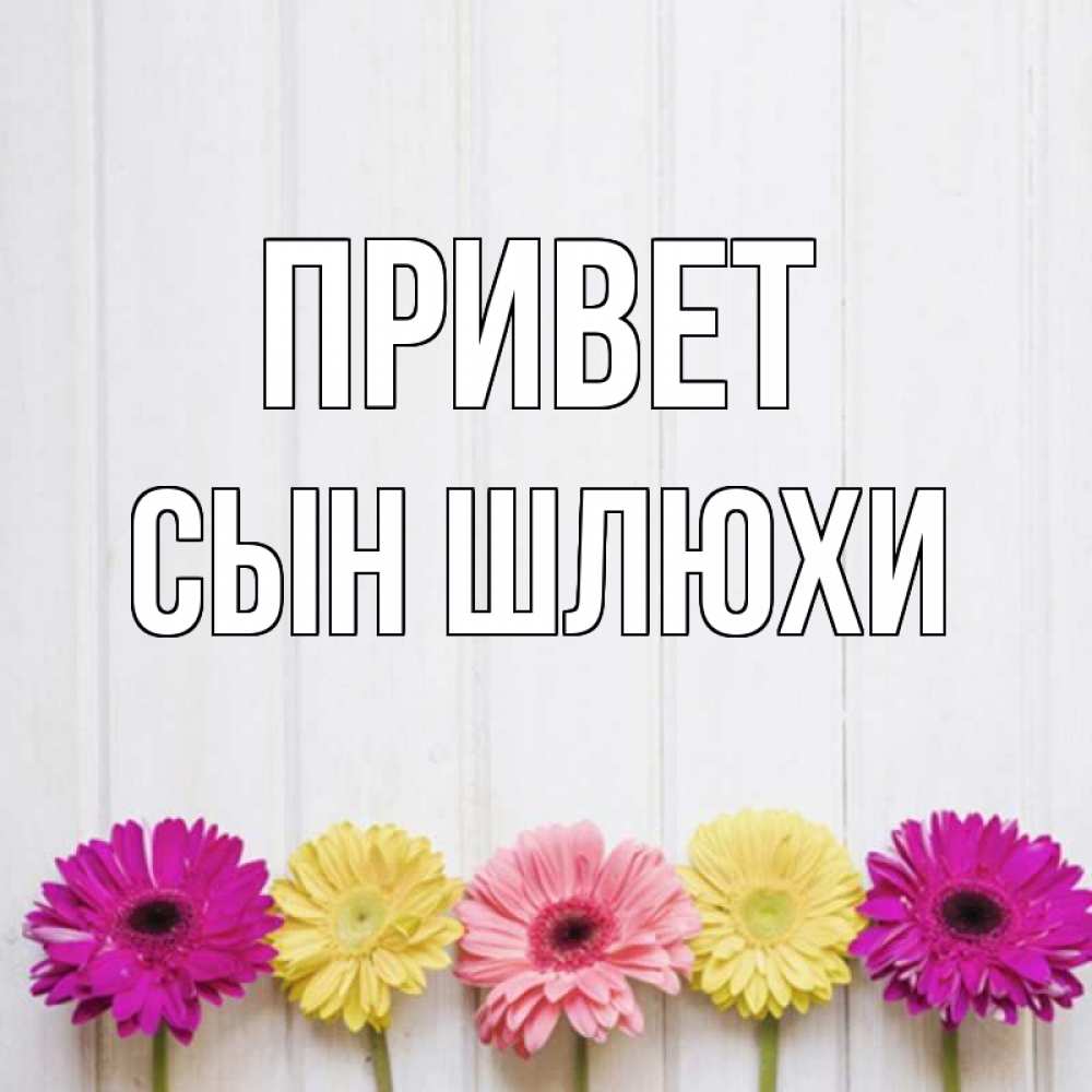 Открытка Привет Сын шлюхи. цветы для позитива. красный желтый и розовый цветок