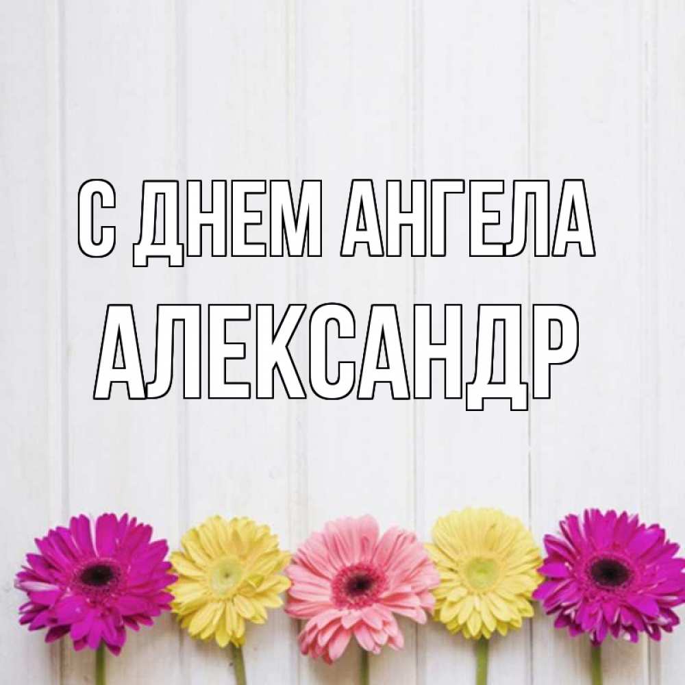 Открытка С днем Ангела Александр. цветы для позитива. красный желтый и розовый цветок