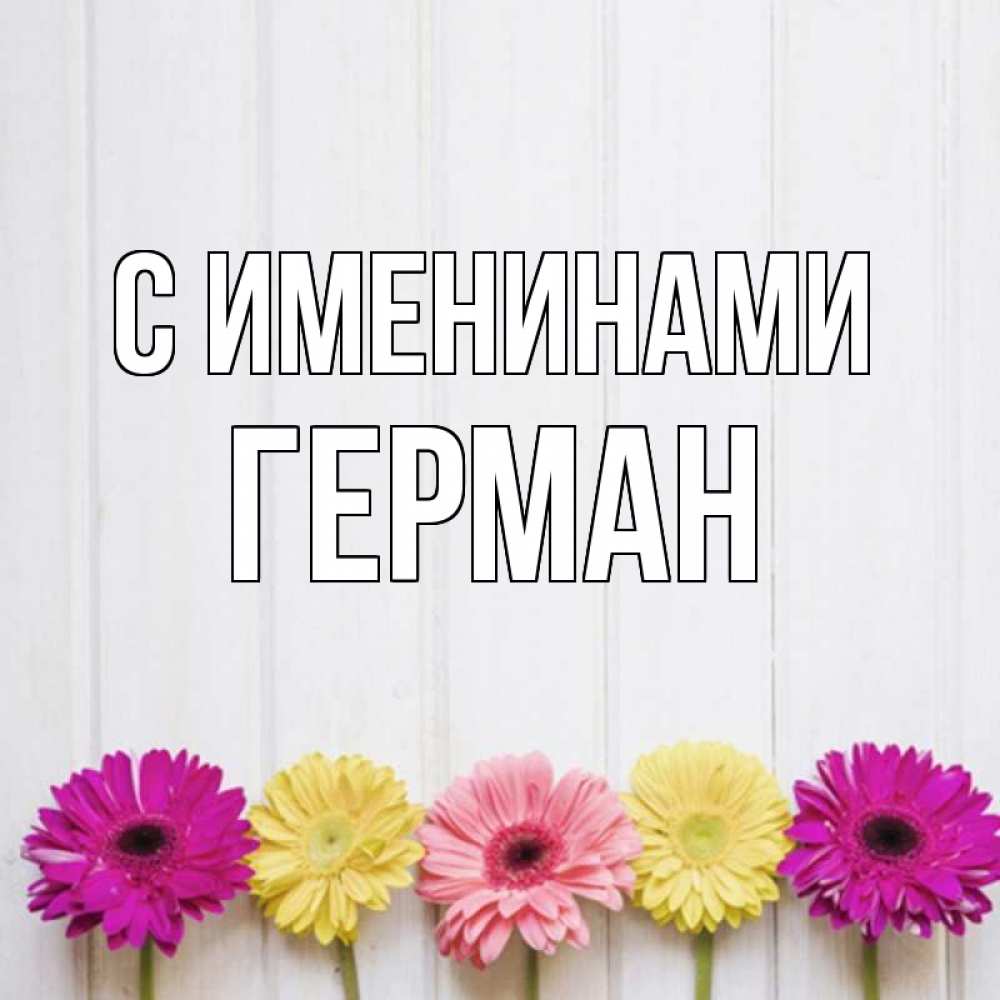 Открытка С именинами Герман. цветы для позитива. красный желтый и розовый цветок