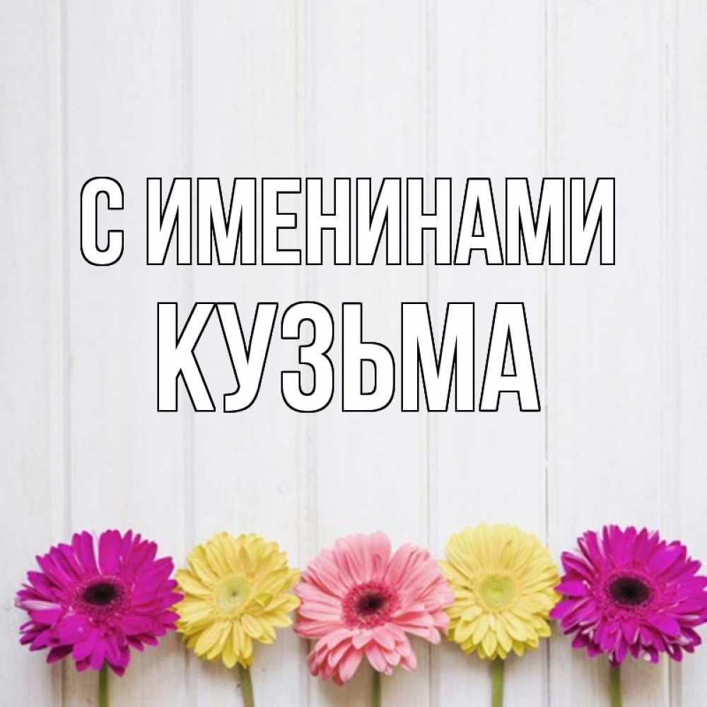 Открытка С именинами Кузьма. цветы для позитива. красный желтый и розовый цветок