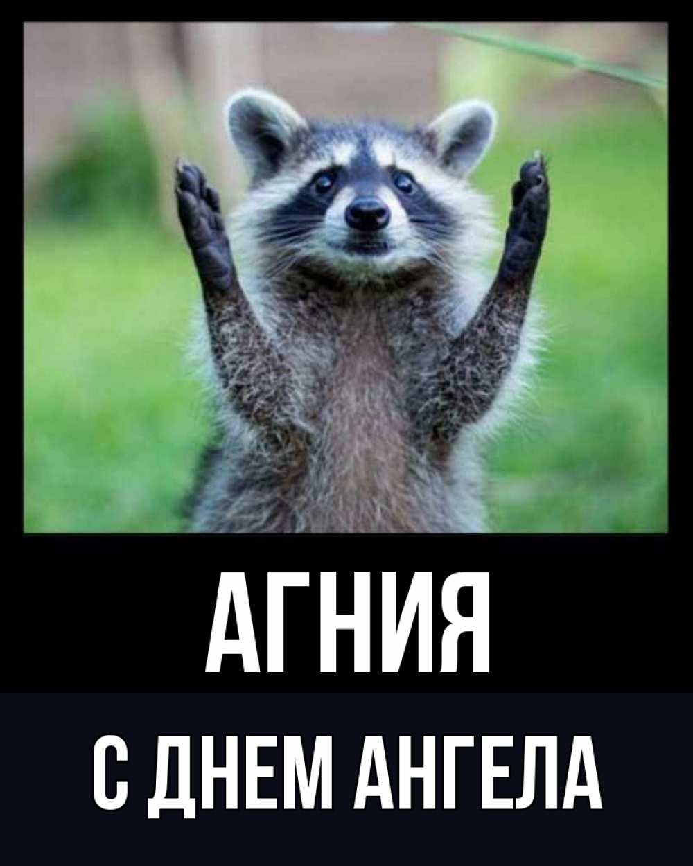 Открытка Агния С днем ангела. енот позитив. хорошее настроение утречком