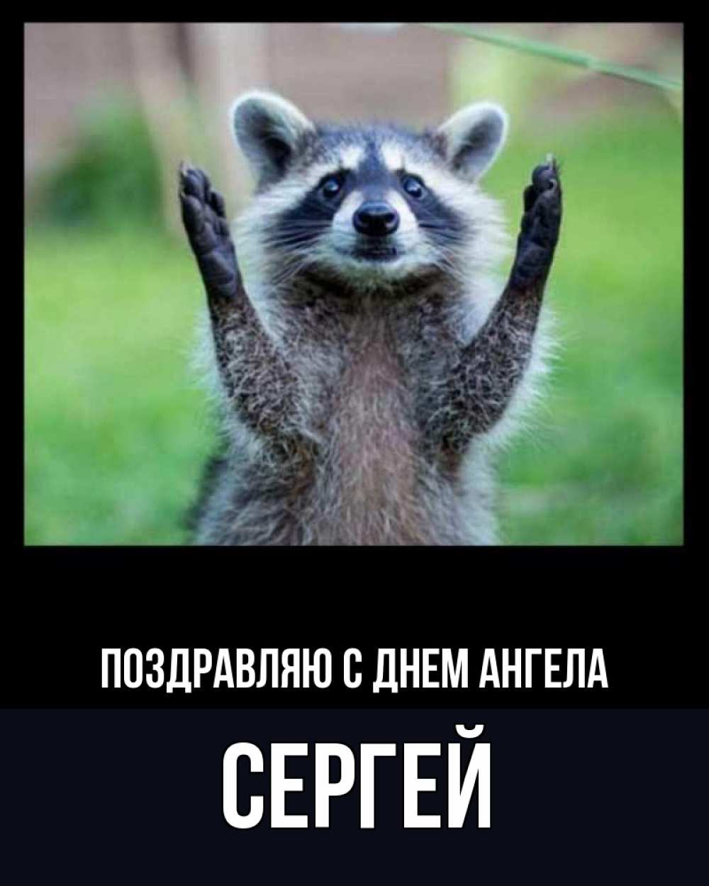 Открытка Поздравляю с днем Ангела Сергей. енот позитив. хорошее настроение утречком