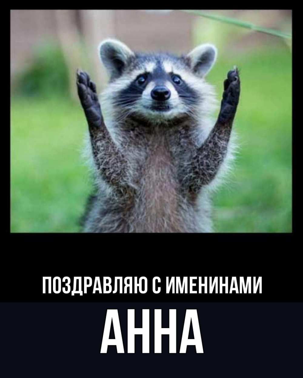 Открытка Поздравляю с именинами Анна. енот позитив. хорошее настроение утречком