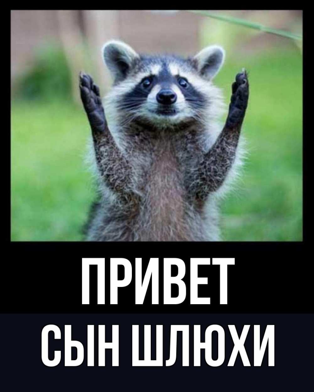 Открытка Привет Сын шлюхи. енот позитив. хорошее настроение утречком