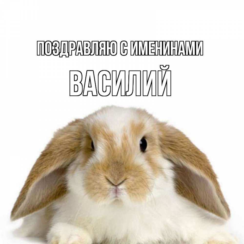 Открытка Поздравляю с именинами Василий. кролик ушки позитив. прикольные открытки на каждый день