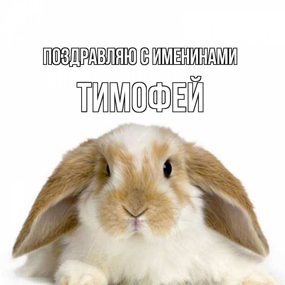 Открытка Поздравляю с именинами Тимофей. кролик ушки позитив. прикольные открытки на каждый день