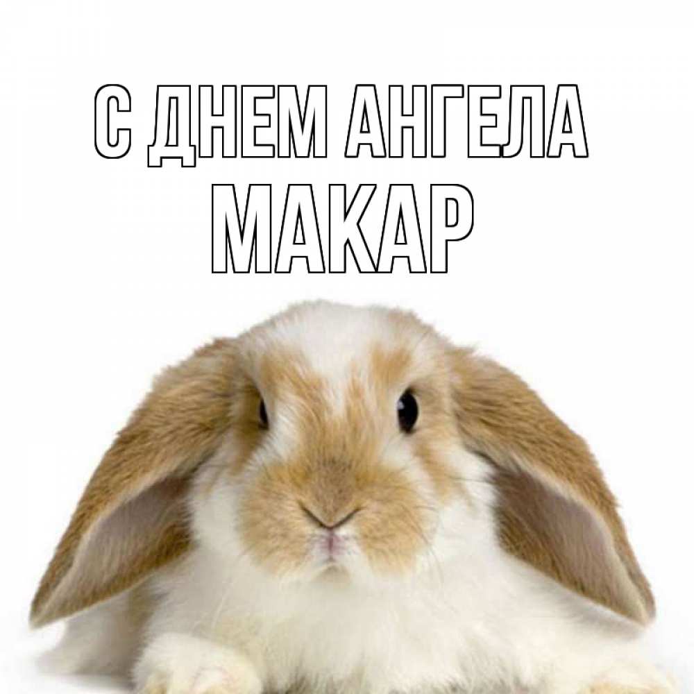 Открытка С днем Ангела Макар. кролик ушки позитив. прикольные открытки на каждый день