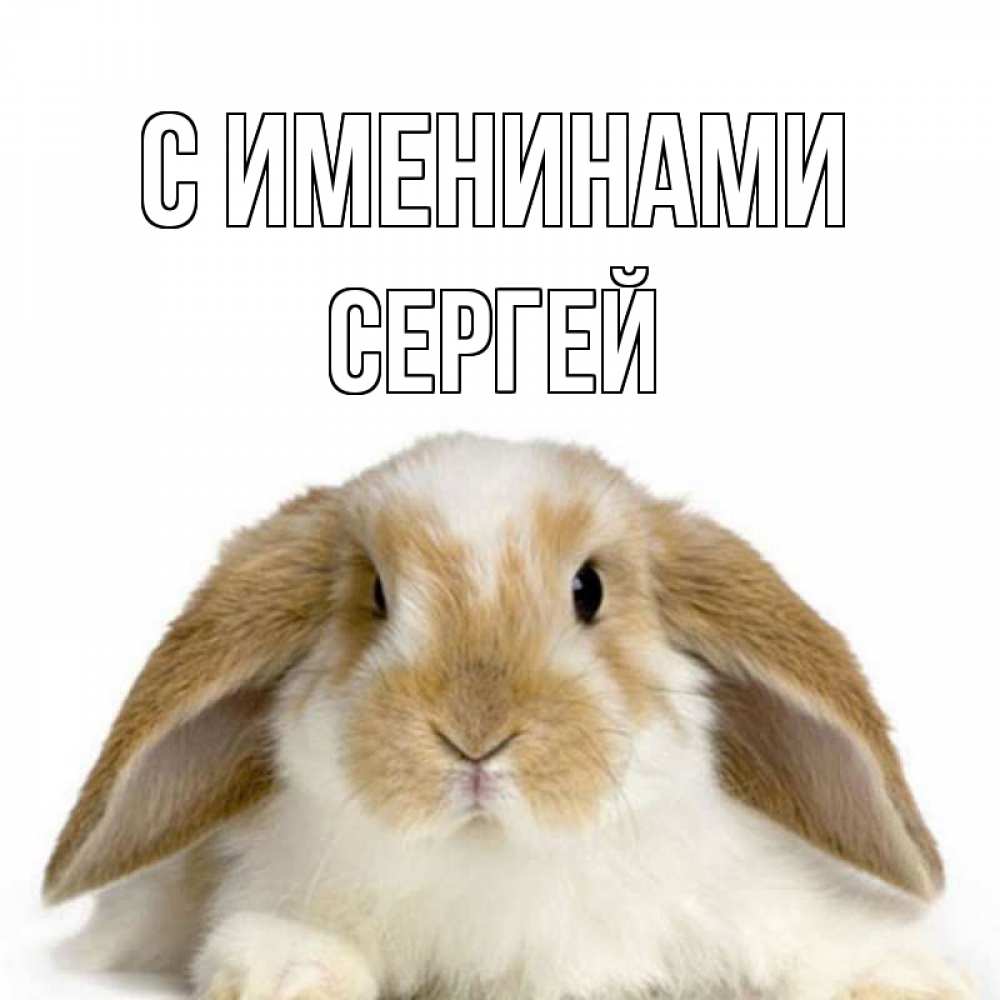 Открытка С именинами Сергей. кролик ушки позитив. прикольные открытки на каждый день