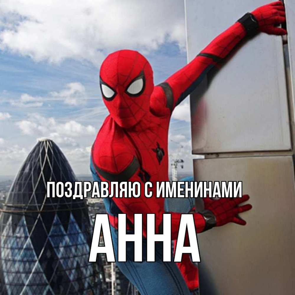 Открытка Поздравляю с именинами Анна. Человек паук в Лондоне. марвел герои