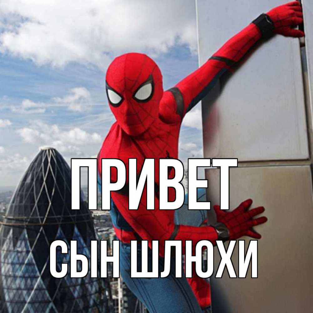 Открытка Привет Сын шлюхи. Человек паук в Лондоне. марвел герои