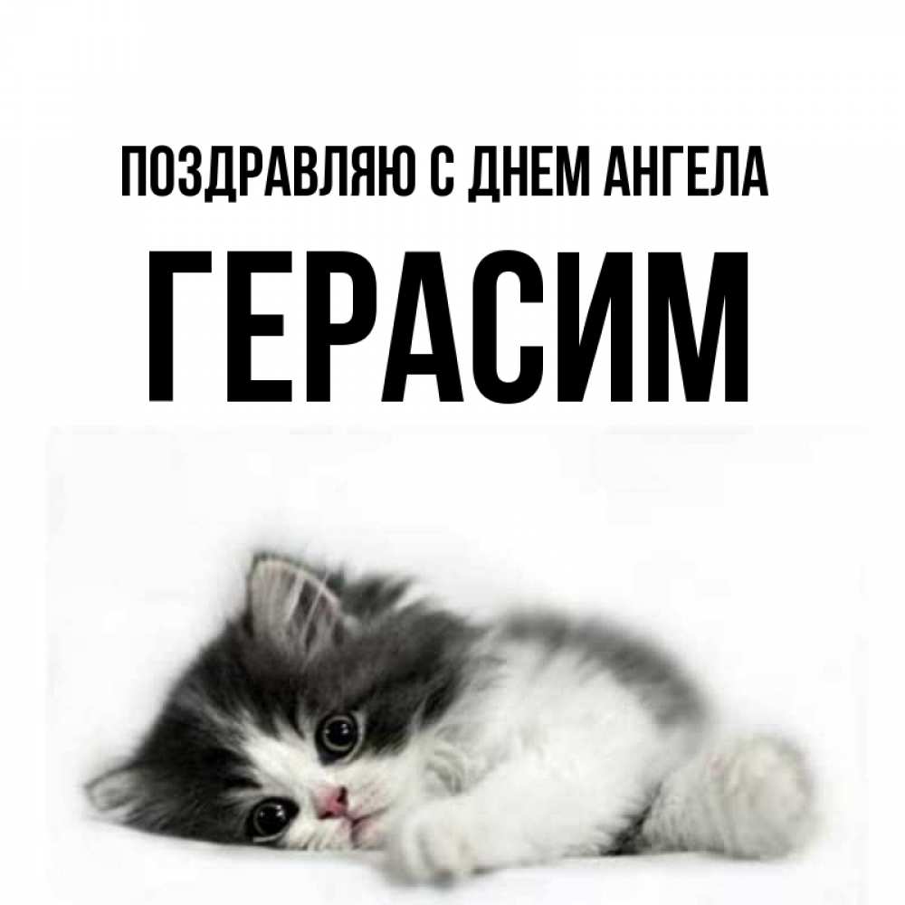 Открытка Поздравляю с днем Ангела Герасим. готик. кот лапки