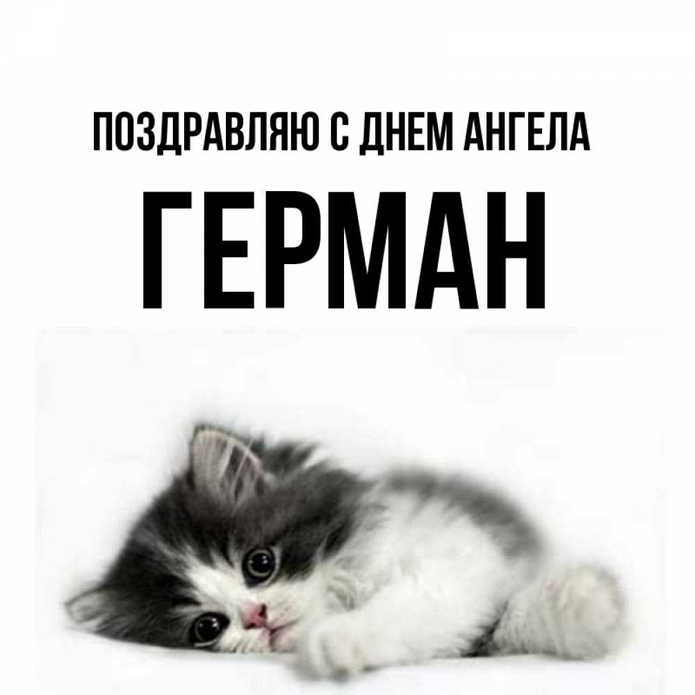 Открытка Поздравляю с днем Ангела Герман. готик. кот лапки
