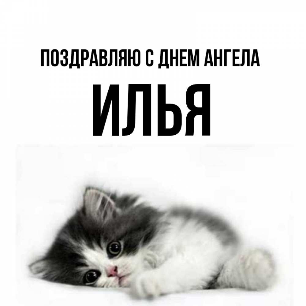 Открытка Поздравляю с днем Ангела Илья. готик. кот лапки